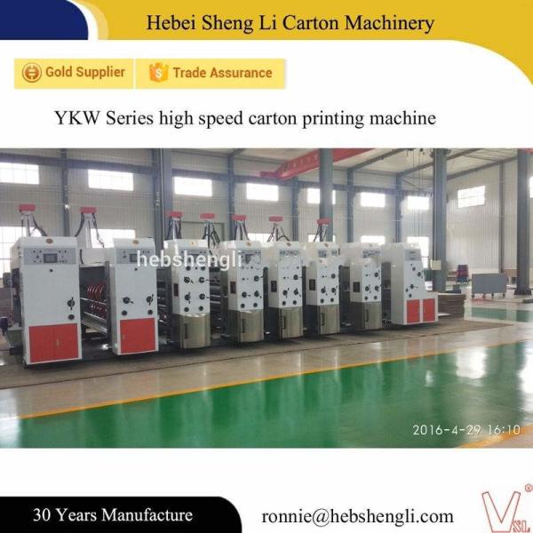 YKW 1270 series corrugated carton box printing machine is used for high graphic corrugated carton printing, adopt sun lead edge feeder, sun doctor blade , ceramic roller, keep the quality highest, also bright oil and uv coating, slotting, ratory die cutting. keep the speed from 80-150pcs/min, big production per day.